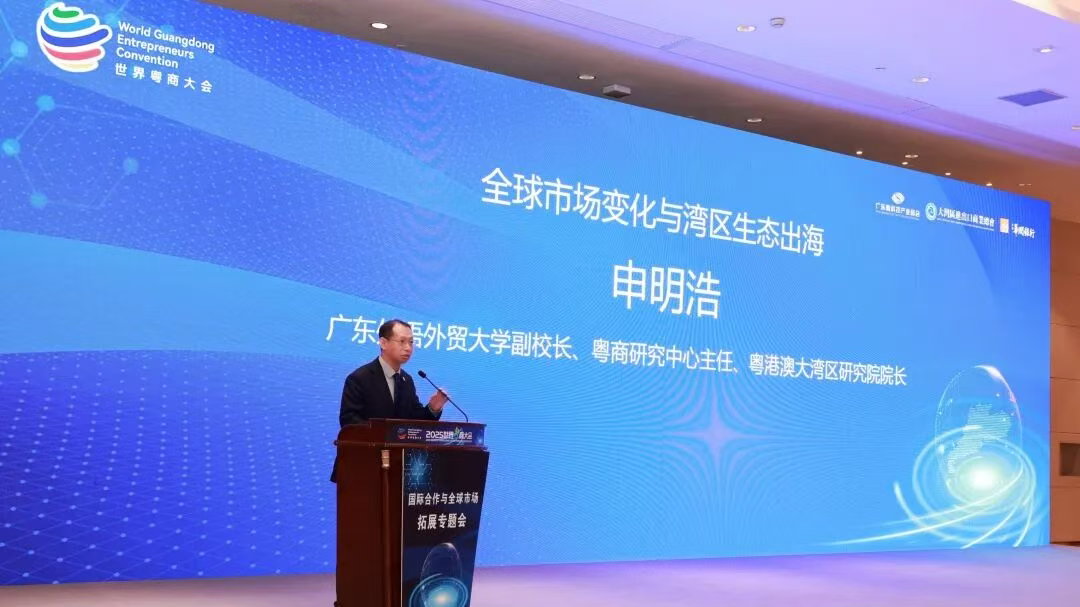 广东外语外贸大学副校长申明浩以“全球市场变化与粤商国际化策略”为主题,运用丰富的数据和案例,分析了当前全球市场的格局和特点,为粤商制定国际化发展战略提供了科学的理论依据和实践指导。