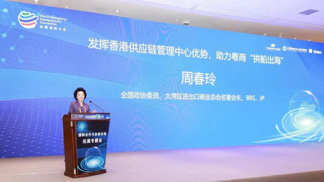 全国政协委员、大湾区进出口商业总会名誉会长周春玲则从香港国际中心的角度出发,分享了“发挥香港供应链管理中心优势,助力粤商‘拼船出海’”的有效途径,并从为更好发挥香港优势,粤港两地可以在“鼓励广东企业在香港设立财资中心和区域总部、支持广东企业聘用香港专业高增值供应链服务拓展海外市场、助力广东企业透过香港推广优势打造国际品牌”三个方面深化合作,服务粤商出海。为粤港合作、共同开拓国际市场提供了新的视角和思路。