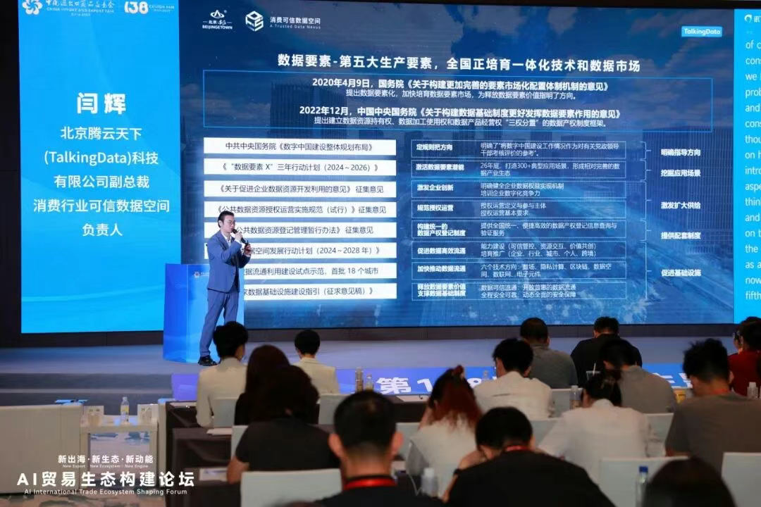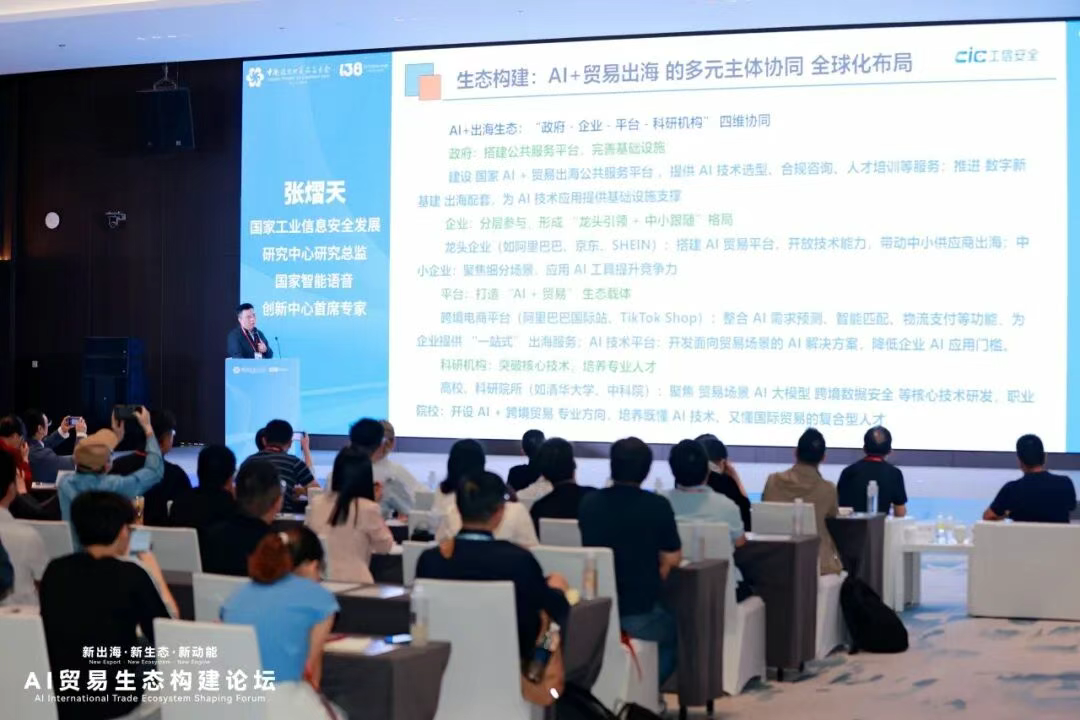 主题演讲环节阿里云智能集团公共事业部中企出海解决方案总监周琴霞带来《通义大模型最新进展分享》,深入介绍通义大模型在技术层面的突破与创新,以及这些进展为贸易出海可能带来的新机遇;国家工业信息安全发展研究中心研究总监、国家智能语音创新中心首席专家张熠天以《从政策到路径——人工智能 + 贸易出海 新模式 新动能 新生态探索》为题,从政策解读到实践路径,多维度剖析人工智能与贸易出海结合的全新模式与发展动能;北京腾云天下(TalkingData)科技有限公司副总裁/消费行业可信数据空间负责人闫辉分享《可信数据空间构建安全流通的“数智桥梁”》,阐述如何通过可信数据空间,在保障数据安全的前提下,实现数据的高效流通,为贸易数字化提供有力支撑;深圳免度智能科技有限公司总经理/联合创始人杨金祥则带来《AI视频赋能跨境贸易增长》,结合实际案例,展示AI视频技术在助力跨境贸易增长方面的独特优势与显著成效。